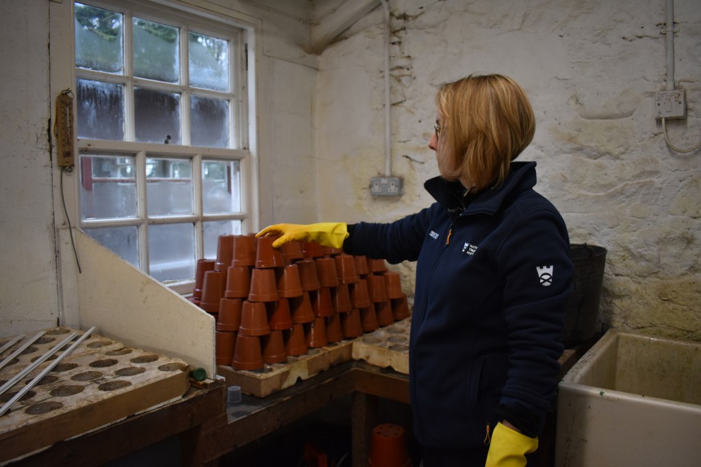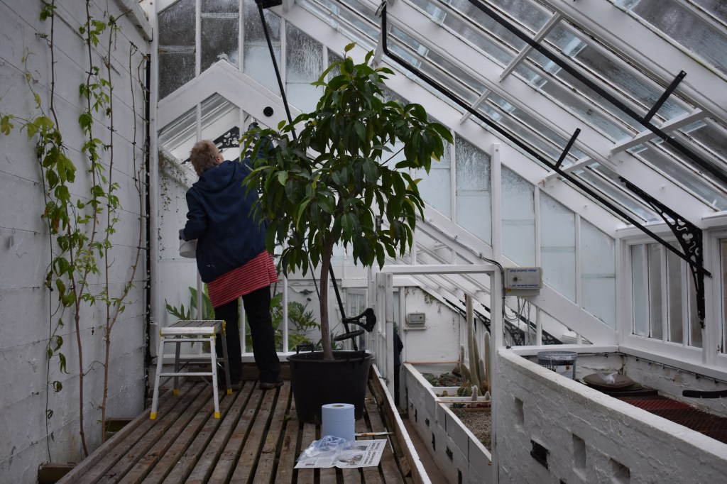 Routine work continues in the erratic weather with tidying of beds, regular pruning and pot washing. The bothy and glasshouse four are being painted. Goodness knows how long since the bothy was painted – it’s only for gardeners – but as a rule one glasshouse interior is painted each year. Contractors do the exterior painting when required.