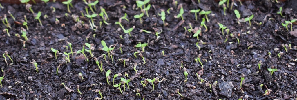 Last year some of the seeds gathered from the garden by Jo included the arbutus. They were soaked overnight. Those that sank were thought to be more viable and were put into a peaty type seed mix in loosely tied polythene bags and kept in the fridge for 60 days. The mix was then put into seed trays and covered with a cm of the mix and kept at about thirteen degrees. Before long (within a week) the seeds had germinated. Jo cautions that the seedlings are subject to damping off, and, furthermore, they dislike being transplanted. How will they fare?