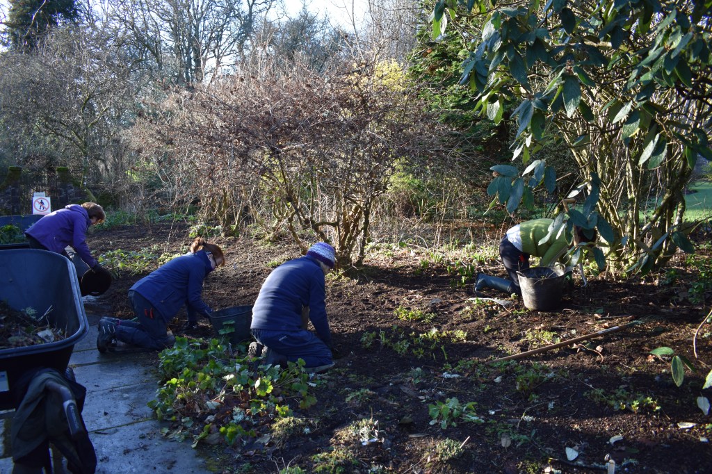 The mild weather fools us into thinking spring is here. The snowdrops are out, the snowflakes are on their way and the first daffodil appeared on 21 January. Jo has planted out primulas in the Red Garden and James, Andy and Tim have been working hard in the new Evolution Garden – more about this project in weeks to come. The sunny days show the garden at its best.
