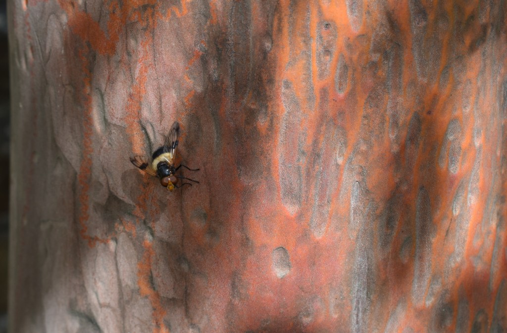 Over a hundred years before Charles Lamont was conducting experiments in Edinburgh, Archibald Menzies – a Perthshire man from near Aberfeldy – was exploring the west coast of the Americas as ship’s surgeon come naturalist. Amongst the many plants he discovered is the Pacific madrone, Arbutus menziesii, which always attracts attention at Crathes for its brightly coloured bark, the red ochre outer bark peeling to reveal a smooth lime green beneath.