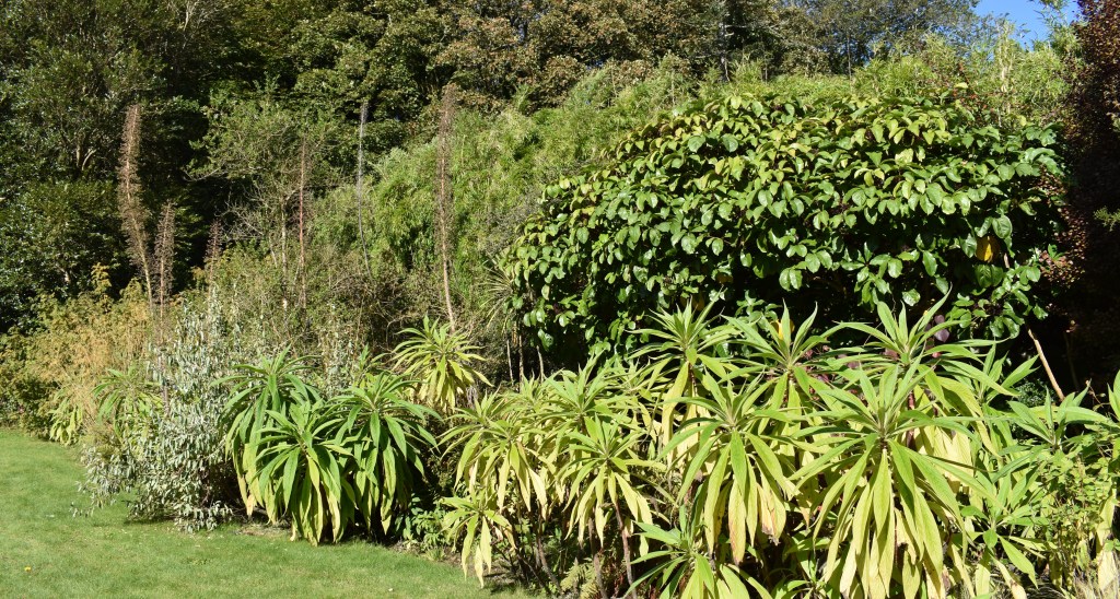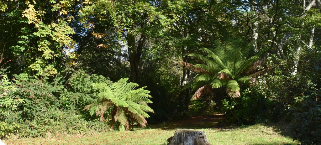 My visit was brief, but I got an overwhelming sense of how different gardening is on the West Coast of Scotland compared with the North-East garden of Crathes. James, the Crathes Head Gardener, knows that difference full well because he worked at Inverewe Garden before taking up his post at Crathes. At Crathes the tree ferns – a new venture – have already been lifted and moved into the glasshouses. In Achamore the tree ferns survive outside and reproduce freely, as do the Echium pininana. The remains of flowering echiums are evident in many parts of Achamore; in Crathes, although they self-seed, they rarely survive the winter to flower outside.