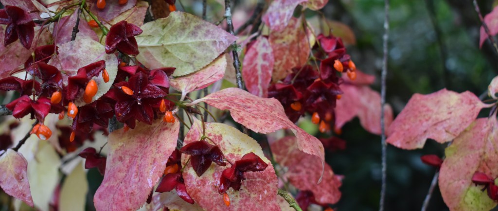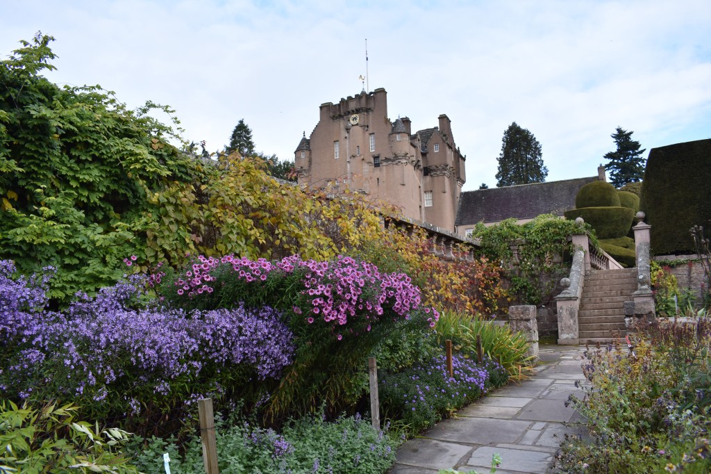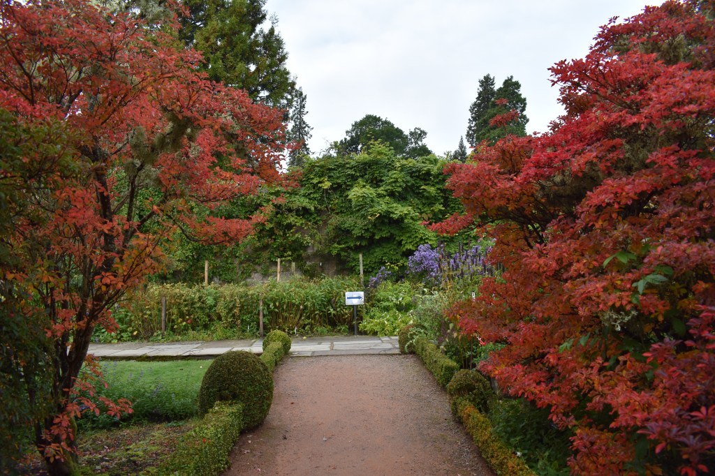 The colours in the garden bore out my thoughts about autumn, but many of the borders were still blooming if somewhat weighed down by the prodigious amount of rain that had fallen. October at Crathes is largely about preparing for winter – cutting back the borders where possible and beginning the process of putting the garden ‘to bed’. The White Border and the Upper Pool Garden are left until last and at the end of the Blue and Pink Border Michaelmas daisies and late aconitums provide nectar for the late butterflies.