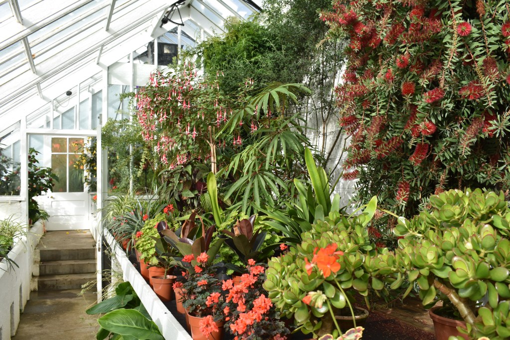 Joanna is still busy with cuttings. The glasshouse is filling up with autumn work, but the show houses looked lovely. The buzz of honeybees attracted to the Australian bottle bush, Callistemon citrinus, filled the second house.
