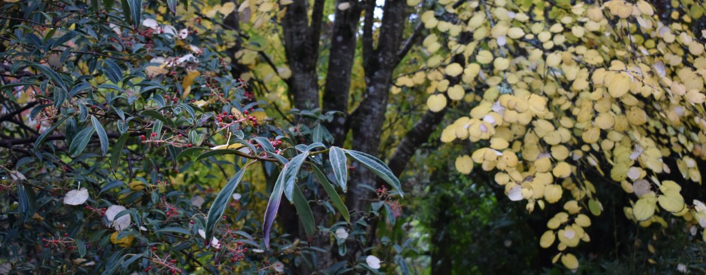 Beside the shelter of the Victorian terrace wall at Crathes the E. pininana were covered with nets last winter. They looked super healthy in the spring and we hoped they would flower, though it was not to be. Will they survive another winter?