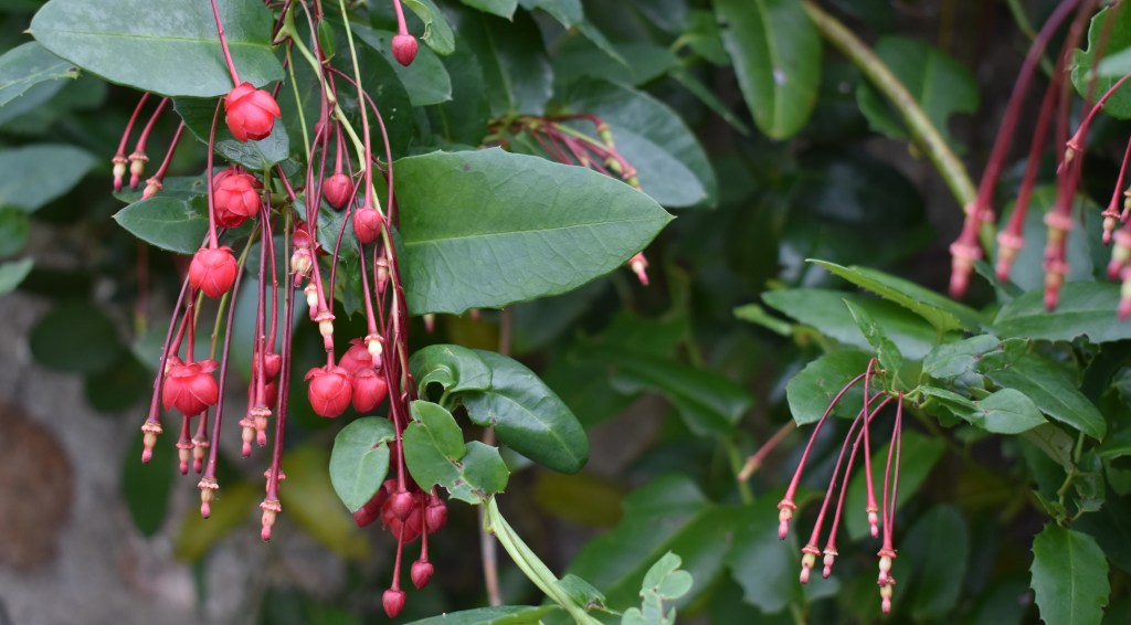 Also in the Fountain Garden is Berberidopsis corallina, growing against the wall and now revealed with the cutting back of summer flowers. From Chile, this plant is threatened in the wild. It likes to grow in the shade and its red flowers are a welcome November sight.