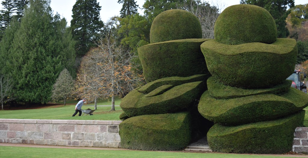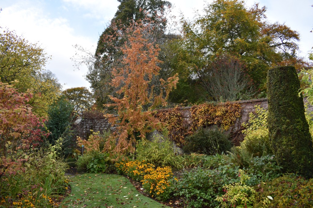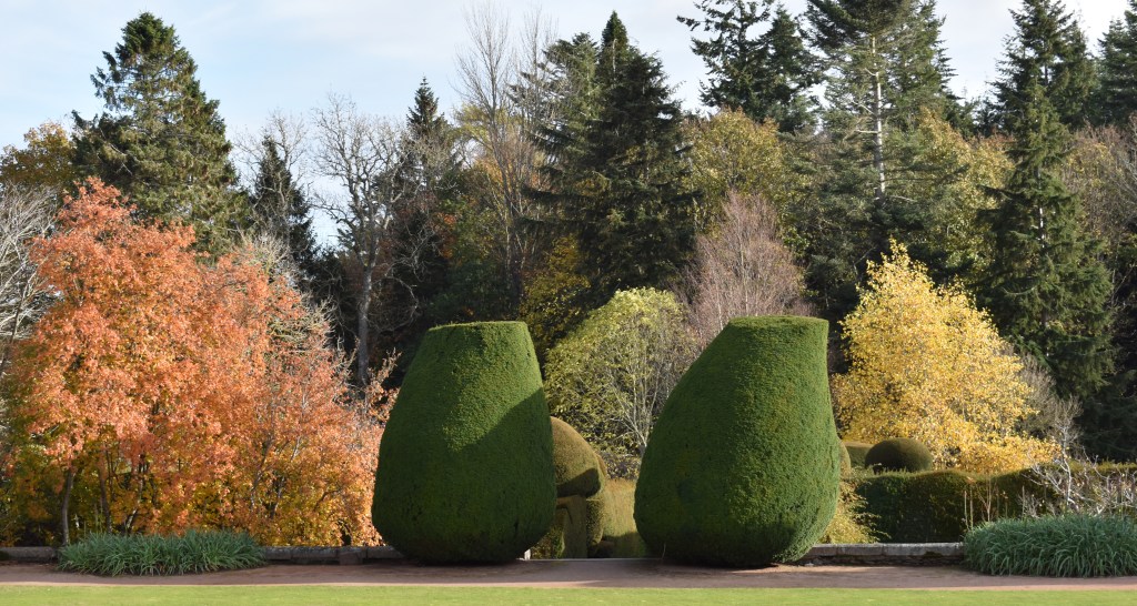 As I leave the garden on 2 November the sun casts its rays across the Croquet Lawn and the sentinels, lighting up the orange of Eucryphia glutinosa and the yellow of the tulip tree. The sentinels have not been cut this year because of Covid, but James remarks that you would hardly know. He thinks that the rest might be beneficial to the yews. Likewise the Castle lawn has benefited from a rest from events. But there’s little to commend Covid; enjoy the autumn colours and keep safe.