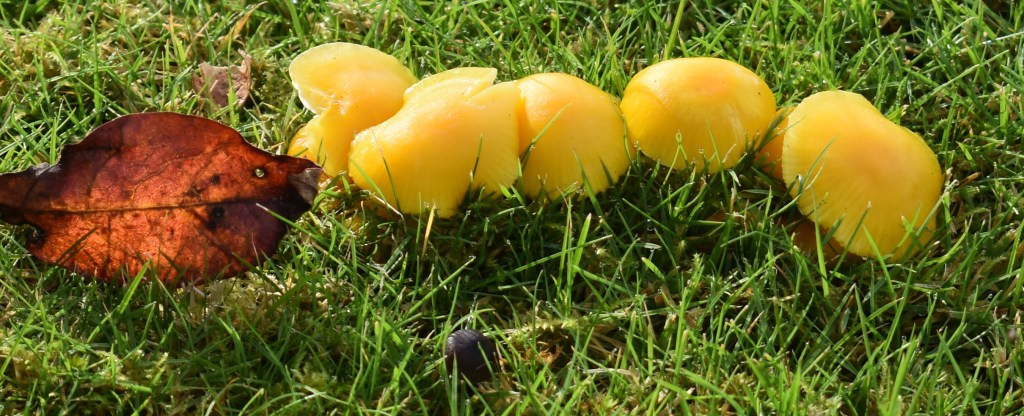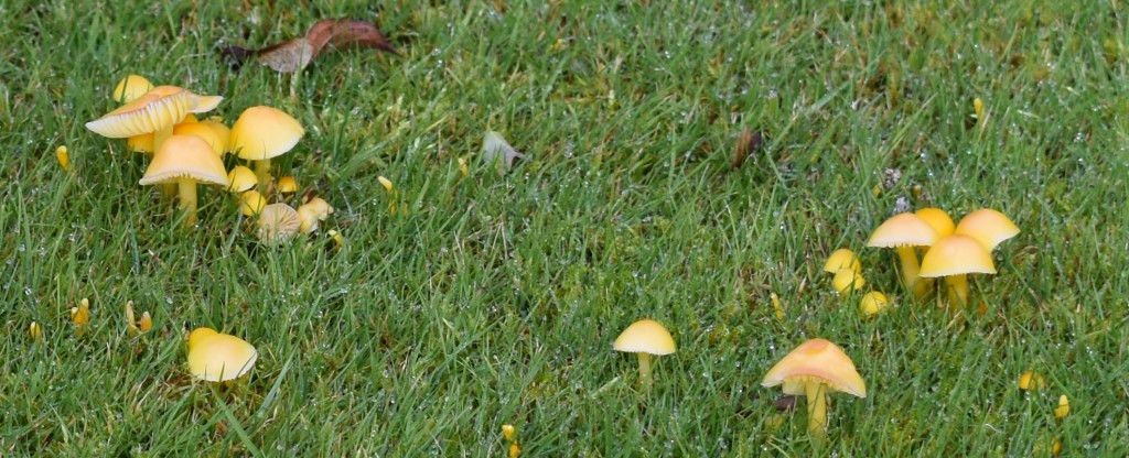The fungi continue to spread across the Fountain Garden lawn showing an encouraging biodiversity. I am not able to identify them, but think that some are waxcaps. These fungi show that the lawn is free of pesticides, herbicides and artificial fertilizers.