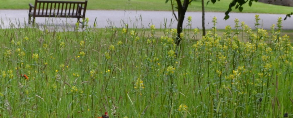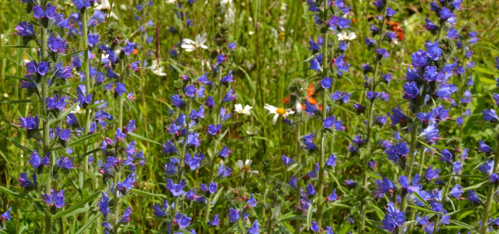 Section 3: 1 Yellow rattle (Rhinanthus minor); 2 Ox-eyed daisy (Leucanthemum vulgare); 3 Viper’s bugloss (Echium vulgare) 4 Knapweed (Centaurea nigra); 5 Betony (Betonica officianalis/syn. Stachys officinalis); 6 Orange hawkweed/fox and cubs (Pilosella aurantiaca) – not a native but widely naturalised.