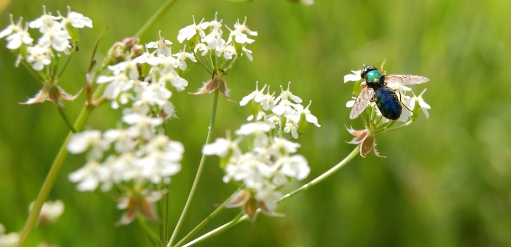 Section 2: 1 honeybee; 2 bumblebee; 3 hoverfly; 4 hoverfly; 5 this is a teaser – it was photographed in my garden in June 2009. It is, I think, a type of wasp, possibly Trichrysis cyanea, although it doesn’t appear to have the long antennae – any suggestions welcome; 6 hoverfly; 7 wasp; 8 solitary bee.