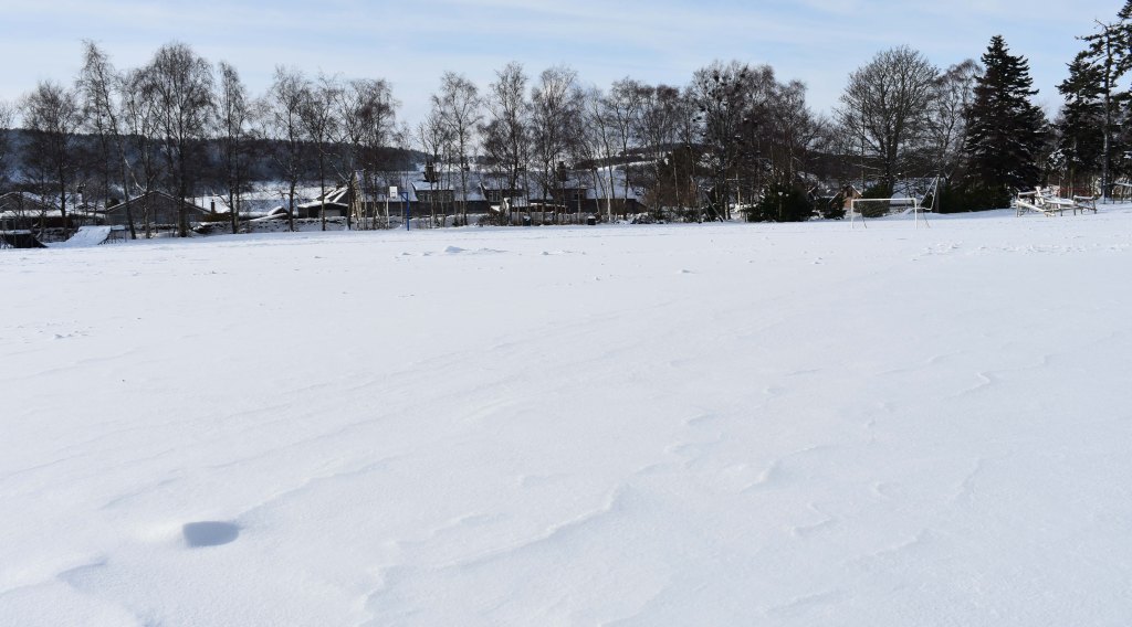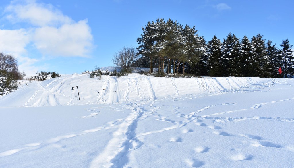 There are a few snow boarders on the course, but in the mornings it is fairly quiet with the children home schooling. By three thirty there will be a rush of youngsters keen to enjoy the slopes whilst the snow lasts. It is a welcome change to the grind of Lockdown.