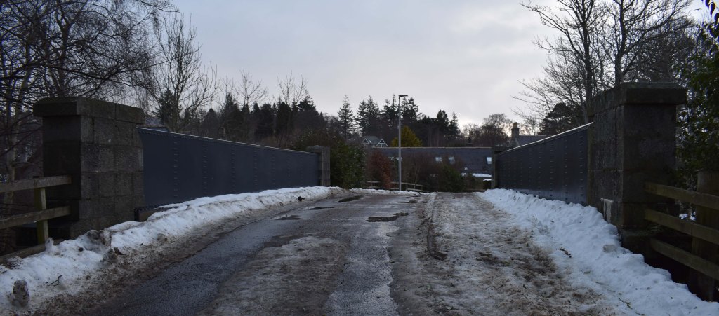 The thaw comes quickly and there is a worry about flooding; water is pouring off the fields and the burns are overflowing in places. The Dee must be very high.