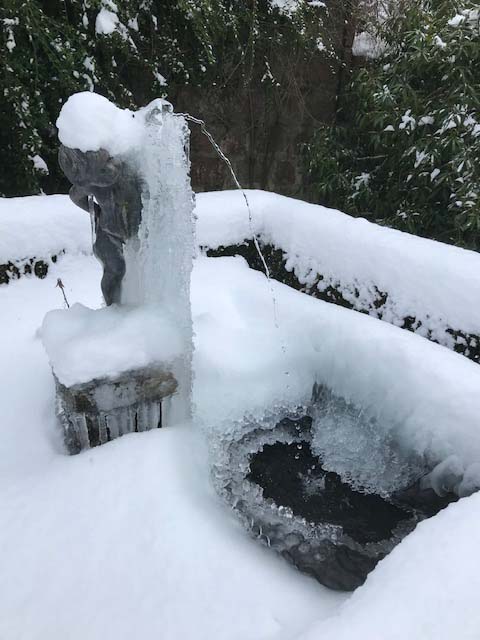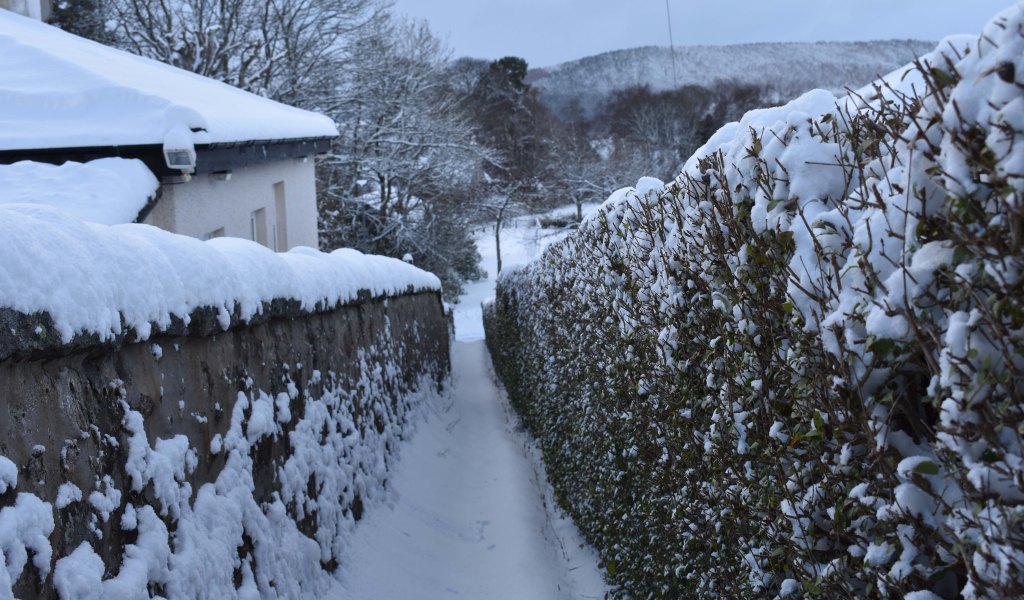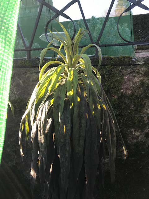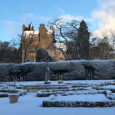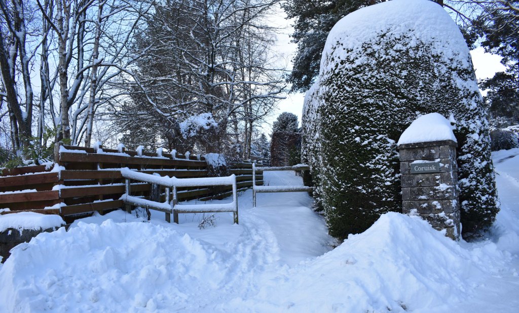Meantime at Crathes Joanna has been having her own problems travelling from Aberdeen to look after the glasshouses. She had to go home early on the 9th of February for fear of having to sleep in the bothy! You can see from one of her photographs how the snow was building up; the next day the snow kept her at home, but with James and Andy living on site, the glasshouses were in good hands. The gardeners are all on alert to use the backup generator if required; how easily hundreds of hours of work would be lost in a power cut. There will be heavy use of oil this winter. In January, when many of these photographs were taken, Joanna reported that the echiums were struggling but still alive; but then came the extreme cold of the 11th February, so I doubt they will have survived. The snow drops taken on the last day of January will be fine under the snow; there should be quite a show this coming week.