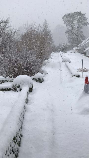 On the 13th we wake to find that there has been yet more snow overnight. This snow, however, is fine and powdery; it drifts in the wind. Many roads have been closed and some cars have been stuck in drifts. Down in the park all the sledge marks and footprints that criss-crossed the snow have been obliterated, as if a palette knife has been used to smooth the royal icing of a cake.