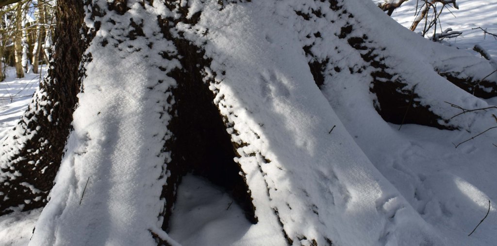 Another day I leave the track and branch up through the woods on to the golf course. The squirrels have left their tracks in the snow.