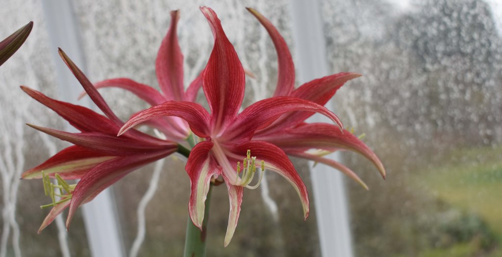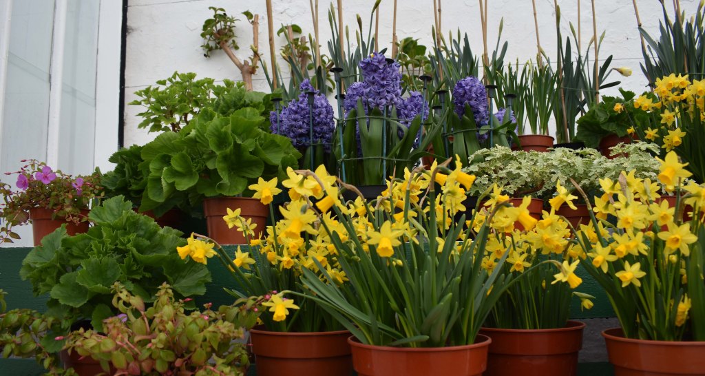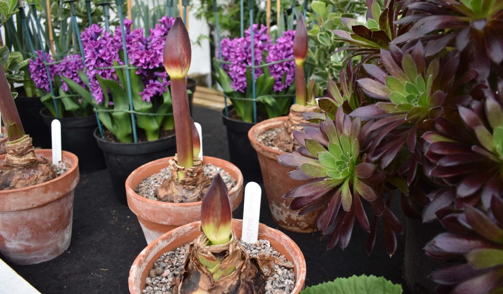 In the show houses there is another amaryllis in flower – Amaryllis ’Quito’ – and another, ‘Grand Diva’, in bud. The scent of the hyacinths is overpowering and spreads across the garden.