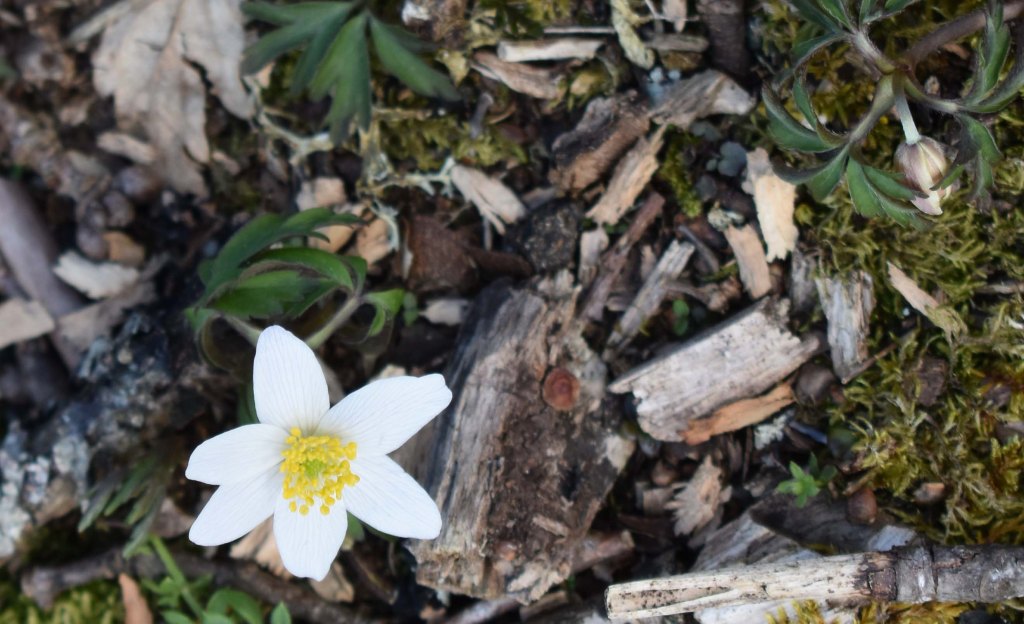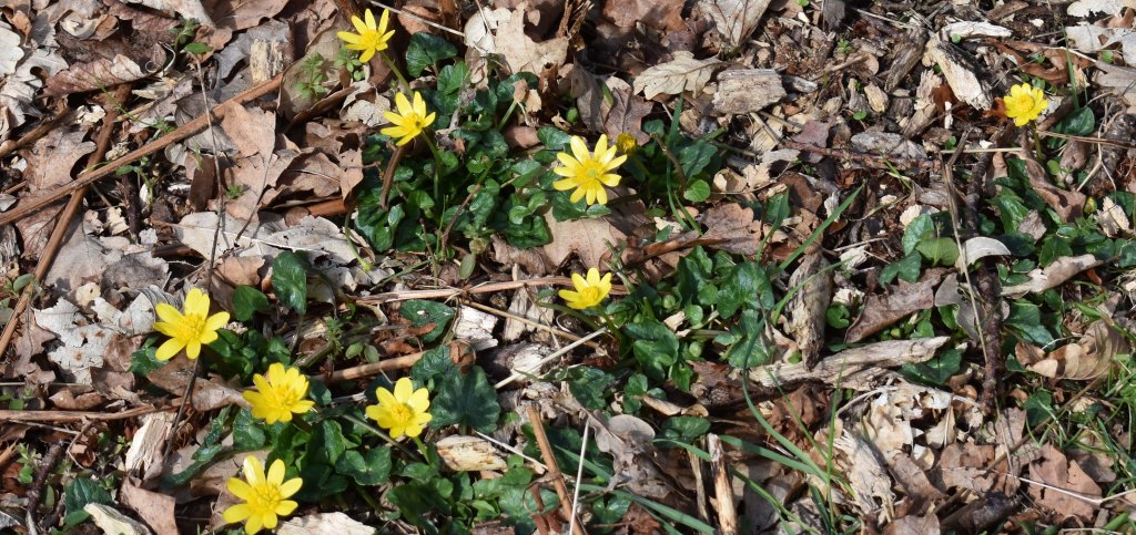 Davy has been busy grinding sycamore stumps in the native woodland project area. The machine is hired in and its advantage is that the previous practice of inoculating stumps with herbicides to kill the tree stumps can be abandoned. The hazels planted in this area (see Sycamores can be a nuisance 16 January 2020) are coming on nicely. Spring flowers are taking advantage of the light – lesser celandine, wood anemone and primrose were already in flower.