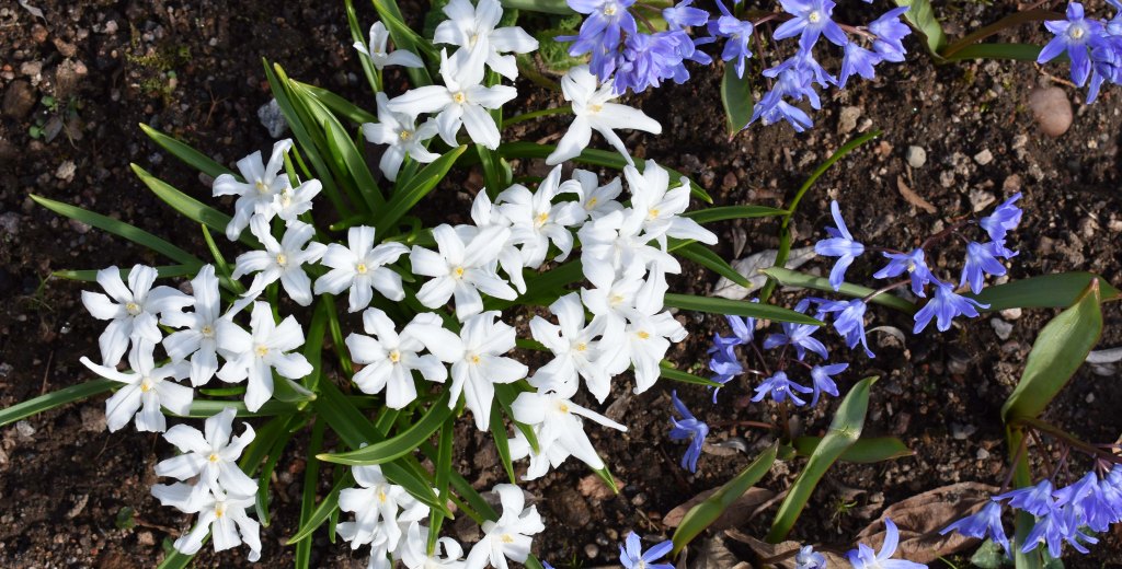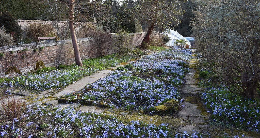 Outside the sea of blue chionodoxas and scillas continues to spread across the garden. I suppose really it should not be allowed on the White Border, but I can’t help but smile at the impudence. Besides, it is so brief and the leaves are discreet – they never get in the way like the colchicum leaves. There is, however, a lovely white chionodoxa on the White Border; if only it would spread.