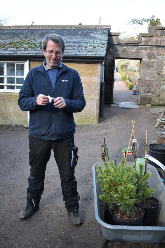 James removed the label so that he could enter the details of the Plant Passport in the records, on the Trust’s database and on the Crathes historical lists. Even the sage plant I purchased from the local nursery last week (click and collect) had a Plant Passport. Much like the ear tags of farm animals this enables any diseases to be traced to their origin.