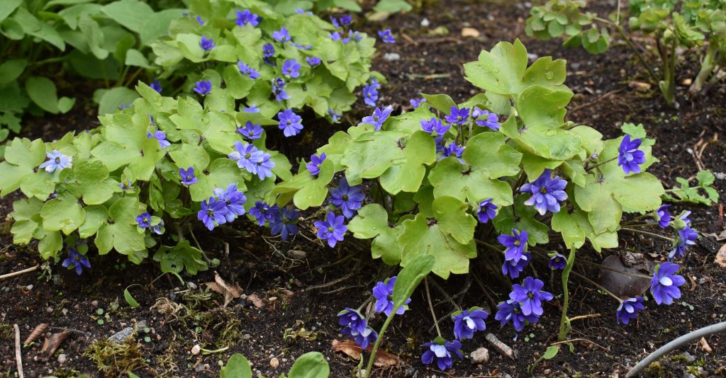 By the Woodland Garden gate I am surprised to see Hepatica x media ‘Millstream Merlin’ still looking good five weeks after I first photographed it – one advantage of the cold weather I suppose.