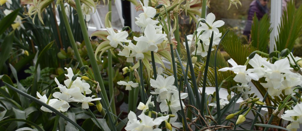The lovely nodding white Narcissus ‘Petrel’ is now at its best. Joanna has used hazel twigs for support. She doesn’t mind the bamboo canes – it just the plastic tops needed to protect gardener’s eyes that offend. Still, she’s not sure about the hazel twigs.