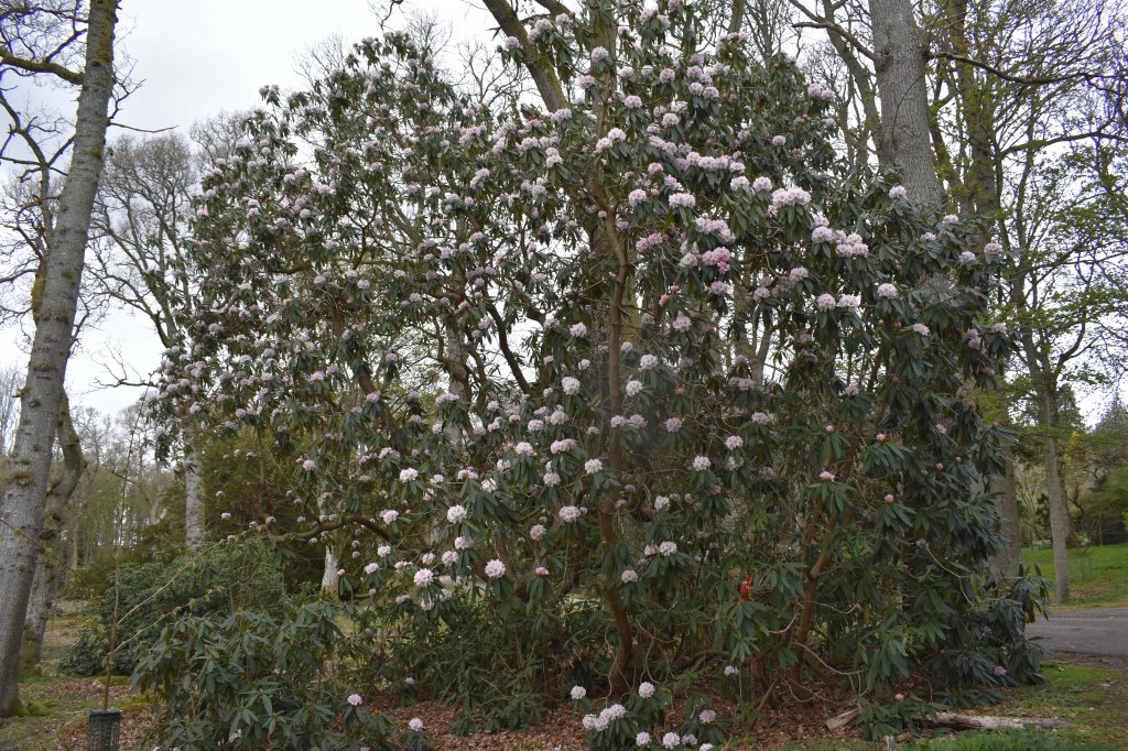 Further up the East Drive a ancient rhododendron is looking fine. It flowers a little later than the Rhododendron calophytum and has escaped the really hard frosts.