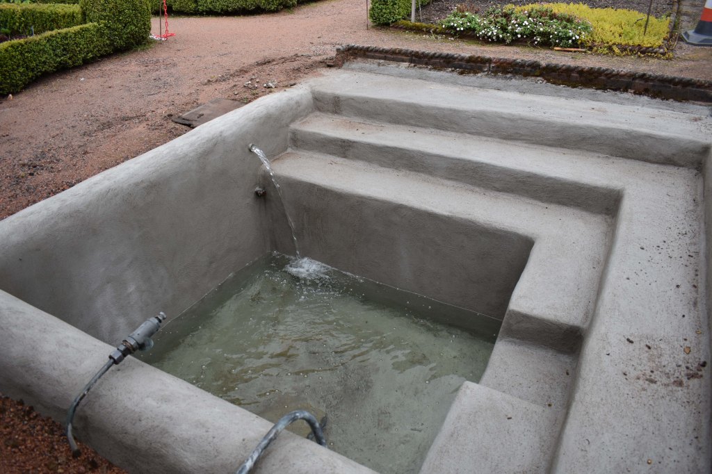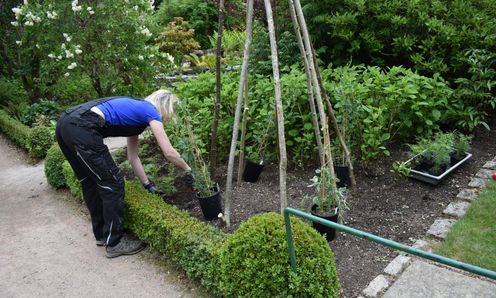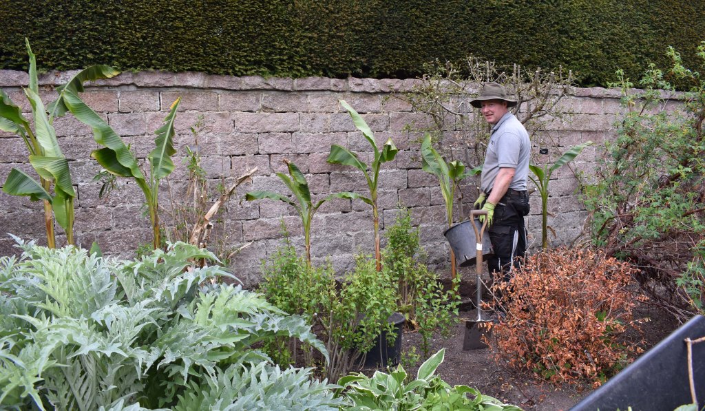 At Crathes, James is always aware of the implications of action in the garden regarding the climate crisis. The dipping pool that was uncovered in December, and originally used for watering the garden, is exciting not only because it will make an attractive feature, but also because of possibilities for water conservation. Even through the dry weeks of April the water that drained from the garden kept flowing along the main drainage pipe. After the water leaves the pool and goes under the road it connects to an old well. It may be that a pump could return this water to a holding tank that could be used about the estate and garden and in the glasshouses. Since water is presently metered this would save a lot of money as well as conserving water. Meantime a local contractor has dealt with the crumbling concrete of the pool and there now just needs to be an adjustment to the various pipes that connect to the drainage so that the pool can fill up and planting can begin.