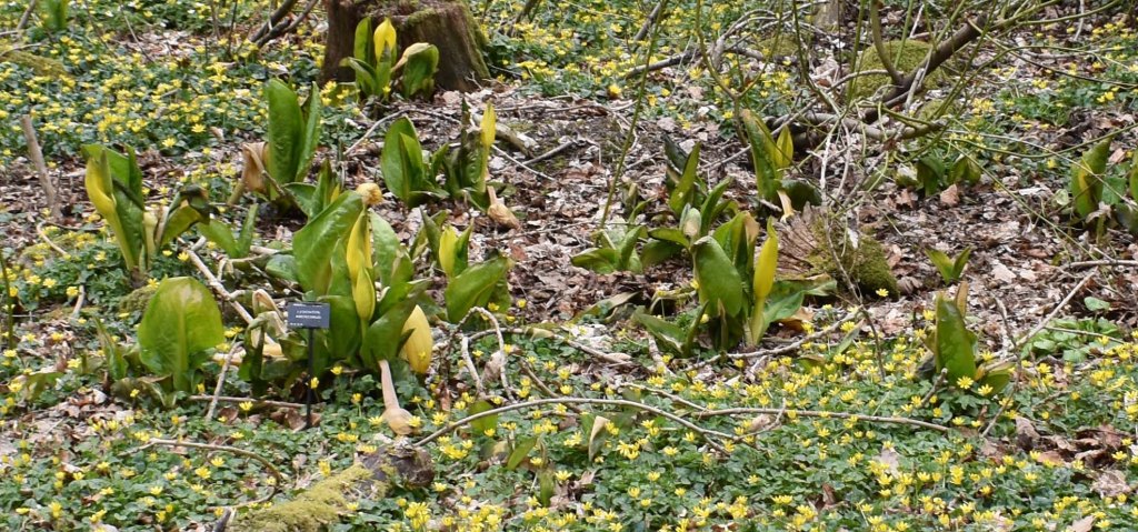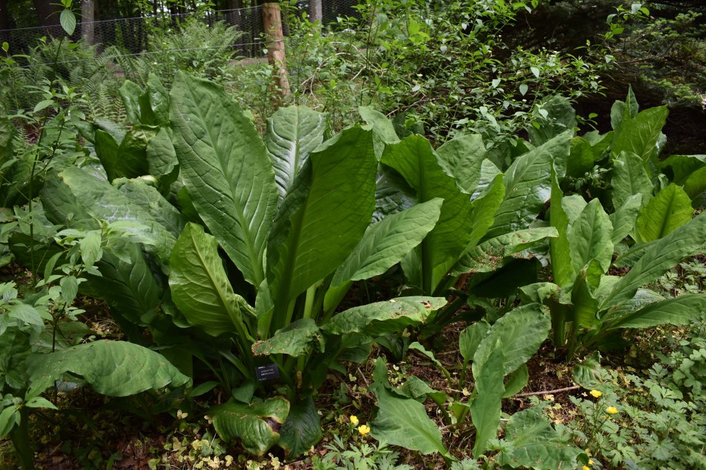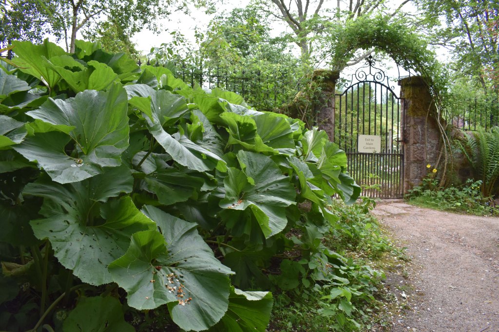 Other nuisance plants that James, Head Gardener, is keeping an eye on are the skunk cabbage, Lysichiton americanus, and the white butterbur, Petasites albus, both of which grow in the Woodland Garden. Gunnera can also be invasive, but that at Crathes is not, I think, the invasive Gunnera tinctoria, but G. manicata which is not a problem. The large leaves of these species are a problem if they begin to spread. There is some skunk cabbage on the Coy Burn, which is under the eye of the Ranger Service, but it is likely to have come from upstream since there are no water courses in the Woodland Garden – just a boggy area where the skunk cabbage and gunnera grow – so the threat of spreading from here is much reduced.