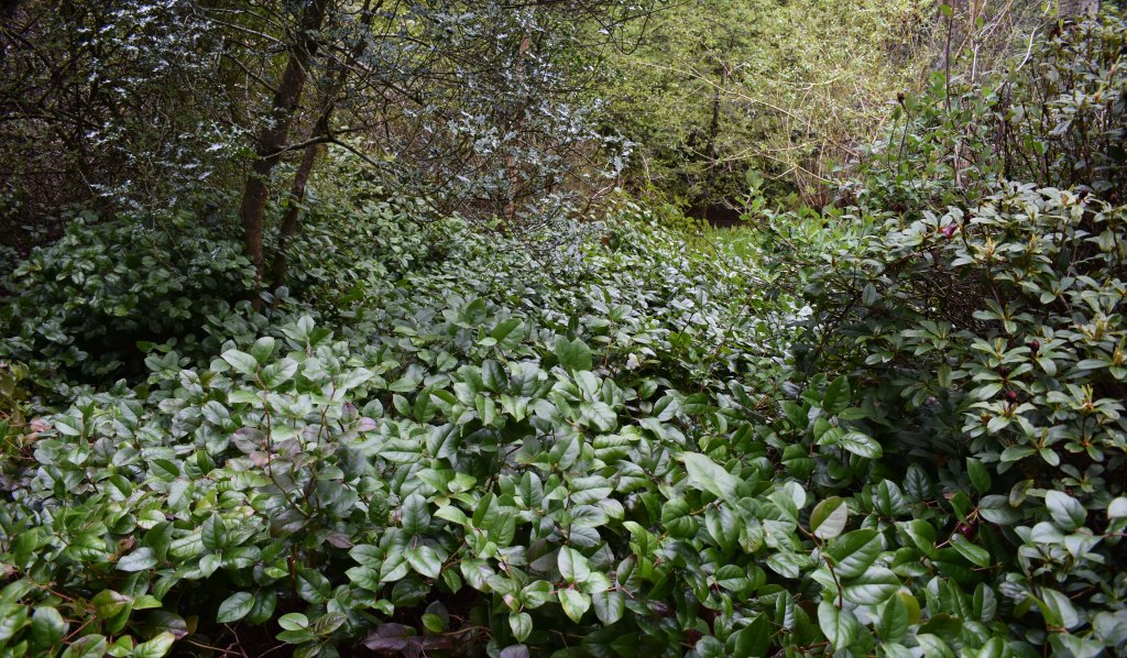 The Gaultheria shallon which grows in Caroline’s Garden is currently being dealt with by the rangers along with essential help from Branching Out volunteers. Branching Out is an NHS partnership organisation that helps vulnerable people connect with nature and enjoy outside activities. Gaultheria is a North American plant that has become a real nuisance in certain areas of lowland forest and heath; like the rhododendron it was planted for game cover. Its deep roots mean that once it is established it is difficult to eradicate. Cutting back is not enough to remove it, but a treatment with herbicide following cutback should do the trick. Herbicide is used reluctantly, but is sometimes appropriate on target species. If this potential threat is removed now it could save heartache in the future.