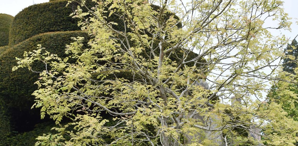 The golden rain tree, Koelreuteria paniculata, planted a few years ago on the Aviary Terrace, has survived the hard frosts well. Sometimes called ‘The Pride of India’ it is native to China. Sir James planted this tree in the Yew Borders in the 1930s/40s and it survived until at least 1979; its replacement hasn’t yet flowered. In the USA it is listed as invasive.