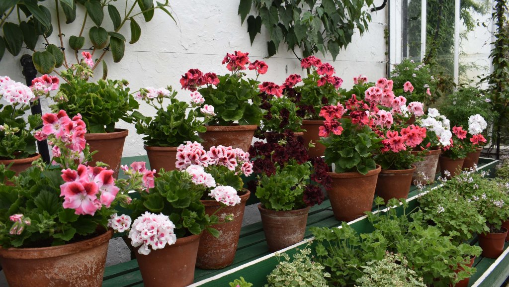 In the glasshouses there is also a return to past habits. Joanna is slowly replacing the plastic pots with clay, especially in the show houses. The pelargoniums look great in the terracotta pots. They are all grown from cuttings taken last year. I never realised how many different kinds there are, both in the wild and in the cultivars. The show houses are now open to visitors.