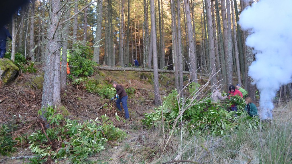 Crathes is famed for the diversity of its planting; for centuries plants have arrived from across the globe. Sir James Burnett (1880-1953) and his wife Sybil Crozier-Smith (1889-1960) were the principal architects of the diversity, and the National Trust for Scotland has since tried to honour their vision. Whilst we celebrate the diversity, we have learnt, to our cost, that some plants can be invasive. The most destructive at Crathes, and across much of Scotland, is the Rhododendron ponticum that was introduced in the nineteenth century for game cover and for its decorative flowers. Since the late twentieth century the Ranger Service and volunteers have been trying to eradicate it at Crathes and during the last eighteen months it has had a free rein. Just recently the local scouts have renewed the attack. I have written about rhododendron eradication elsewhere.*