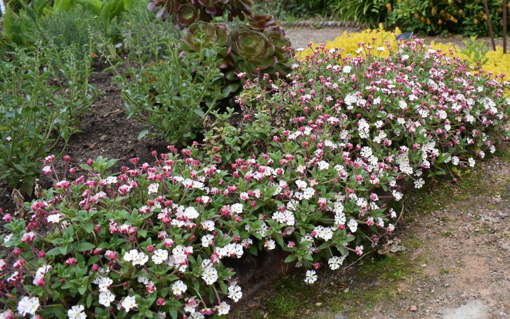 We are still counting the cost of the late hard frosts, with some shrubs looking dead and others slow to catch up despite the lovely warm weather – we went from winter to summer in the last few days of May. The handkerchief tree, Davidia involucrata, looked to be barely alive on the 25th May but by 11th June was looking fine, although many of the white bracts were blown off and lying on the ground. The tender Fremontodendron californica was thriving and I was surprised to see that a row of night scented phlox, Zaluzianskya ovata, had survived the winter and is in full flower.