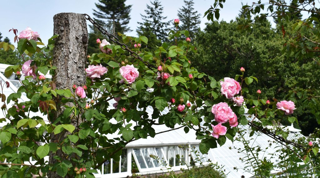 Rosa ‘Constance Spry’ growing on the Double Herbaceous Border, 30 June 2021.