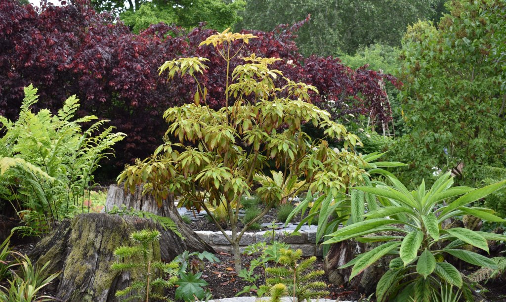 The Japanese wheel tree (centre), 6 July 2021.