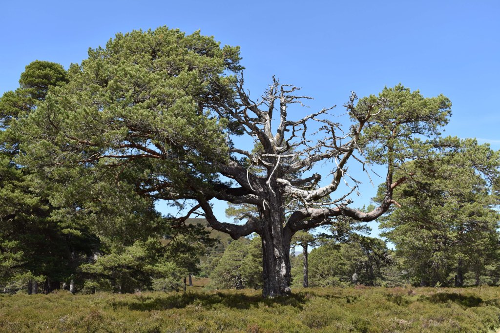 Regenerating Scots pines growing amongst the old granny pines in Glen Lui, 28 June 2021.