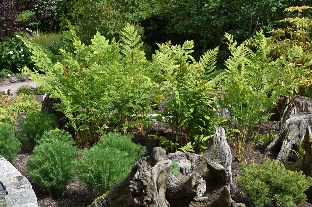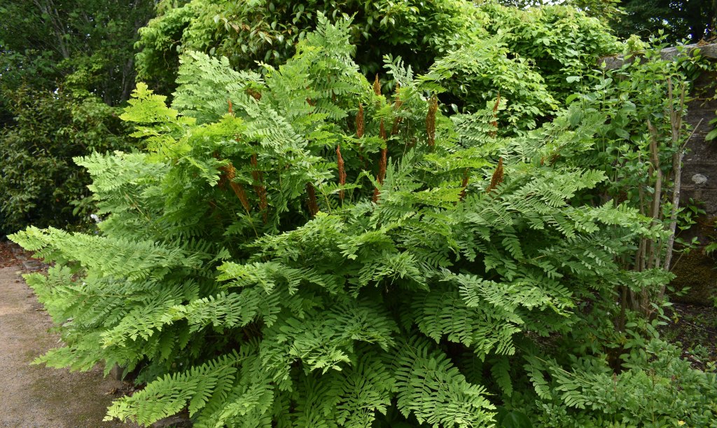 Fertile stems seen amongst the fronds of the native royal fern, Osmunda regalis, growing in the Fountain Garden, 12 July 2021.