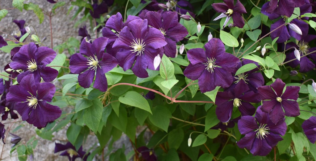 There are plenty of clematis in flower just now, some on the outside of the garden wall.