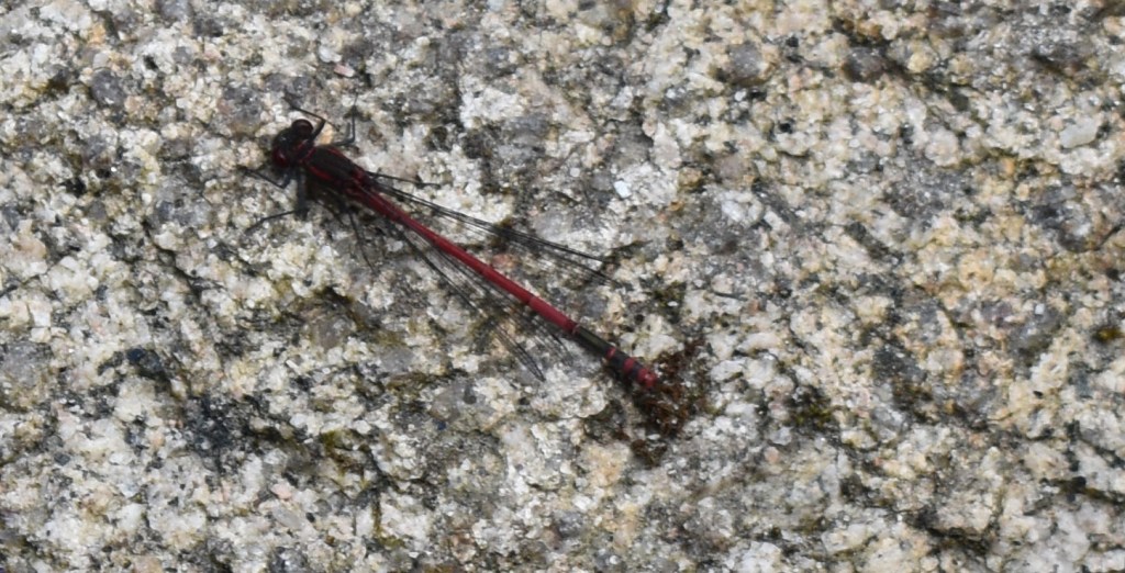 These plants will only thrive in poor conditions and in natural rain water. James garnered a small amount of sphagnum moss from the estate to add to some gritty compost for the growing medium. It seems as if the moss has imported some midge larvae into the pool since there are midge larvae in their thousands jerking about the pool; our other ponds do not have these larvae in such a quantity. We have to hope that the pitchers will do their stuff and eat some midges. I don’t think the damselflies will be attracted to the pitchers, but they might well eat the midges; maybe some frogs, bats and house martins will eat more; I fear the gardeners will suffer.