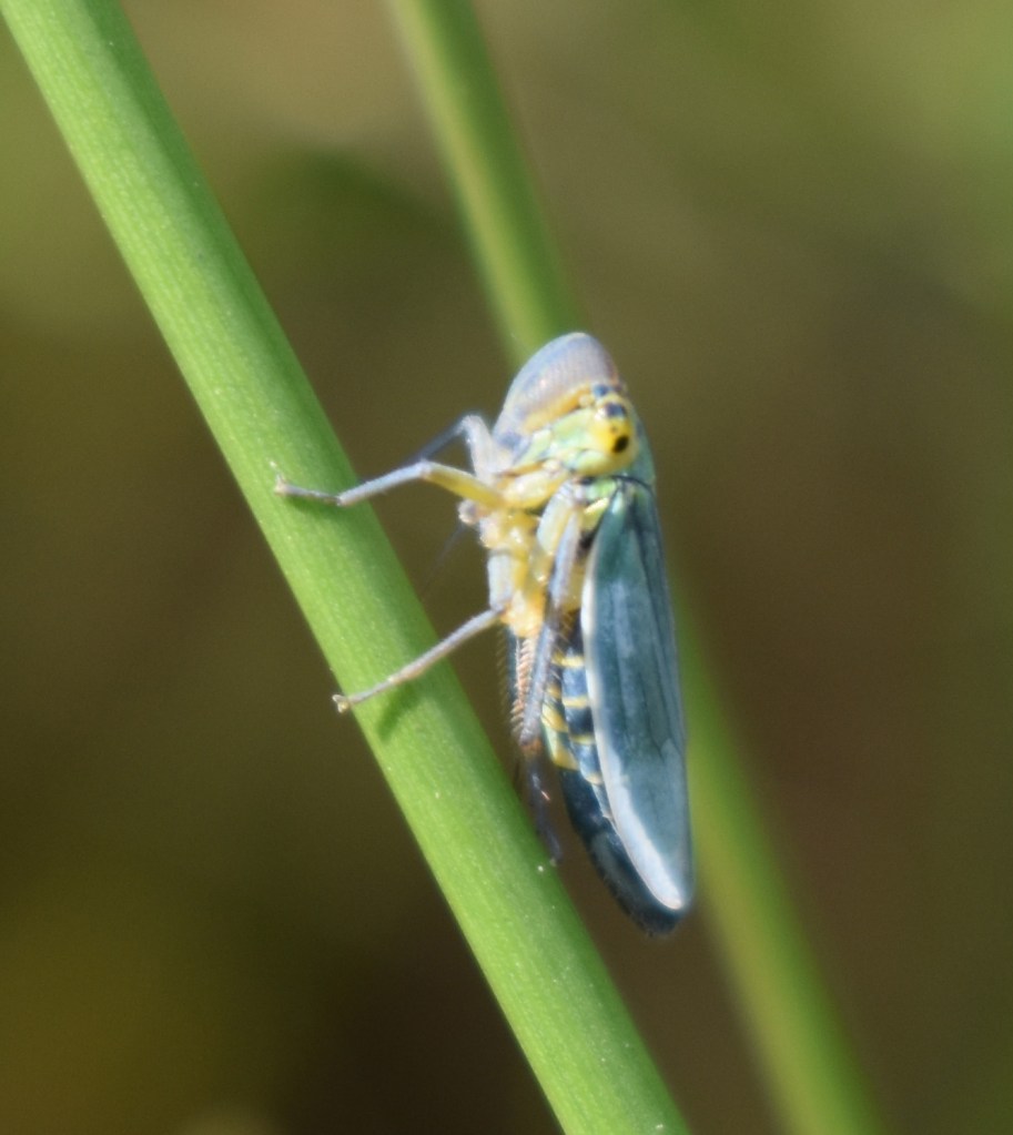 I fancied a wander along the back forestry road hoping to see lizards and perhaps the golden-ringed dragonfly, but no luck. There was plenty else to see. Speckled wood and ringlet butterflies accompanied me along the way, but were too flighty to photograph. I did manage to catch the meadow brown and found a small heath caught in a spider’s web. The meadow brown had a bit missing where I think a bird had tried to catch it and was fooled by the ‘eye’ on the wing (instead of pecking at the juicy body) thus letting the butterfly live a little longer. Another day I saw what I think is an ichneumon wasp struggling in a similar sort of web – I didn’t see the spider though. There are many different types of ichneumons, but generally they parasitise caterpillars by laying their eggs into the caterpillars; when the ichneumon larvae hatch they feed on the caterpillars. Further on I spied a tiny iridescent leafhopper, possibly Cicadella viridis – it was so beautiful. Grasshoppers were frequent in the grassy places – the sound of summer – the one I caught with my camera is, I think, the mottled grasshopper, Myrmeleotettix maculatus.