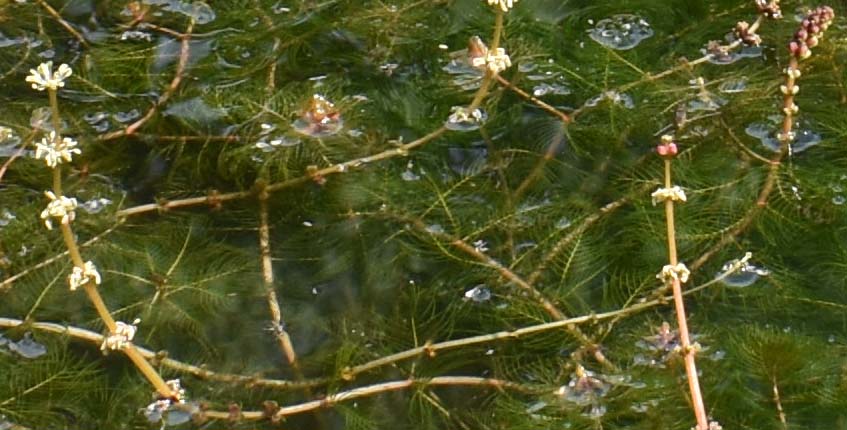 I have seen a few of the large red damsel flies, Pyrrhosoma nymphula, both around the dipping pool and in and beside the Woodland Garden pool where the water lily is looking very beautiful and the pond weed, which I think is the native spiked milfoil, Myriophyllum spicatum, is spreading rapidly. The milfoil is one of the oxygenating plants that helps to keep the pond healthy by making sure that the water does not stagnate. It also provides a good habitat for developing wildlife. The flower spikes are insignificant by any yardstick. In North America this milfoil is invasive and difficult to control. I don’t think there will be any problem with the North American carnivorous plants getting out of control here. They are known to naturalise in parts of Ireland but not in Scotland. James will be keeping an eye on the ditch where the excess water from the dipping pool may end up, but there is no connection to any water course further afield.