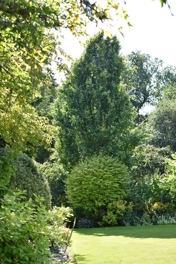 More issues of genetics arise as we contemplate the Portugal laurel in the centre of the White Border. We don’t know its age, but it is well over a hundred years, perhaps two hundred years old. For some time the head gardeners have worried about it. Now hollow and looking rather thin on top the time to replace it cannot be that far away. The regrowth at the bottom shows us that it would not die if the top was blown over, but its position in the garden calls for a more immediate solution.