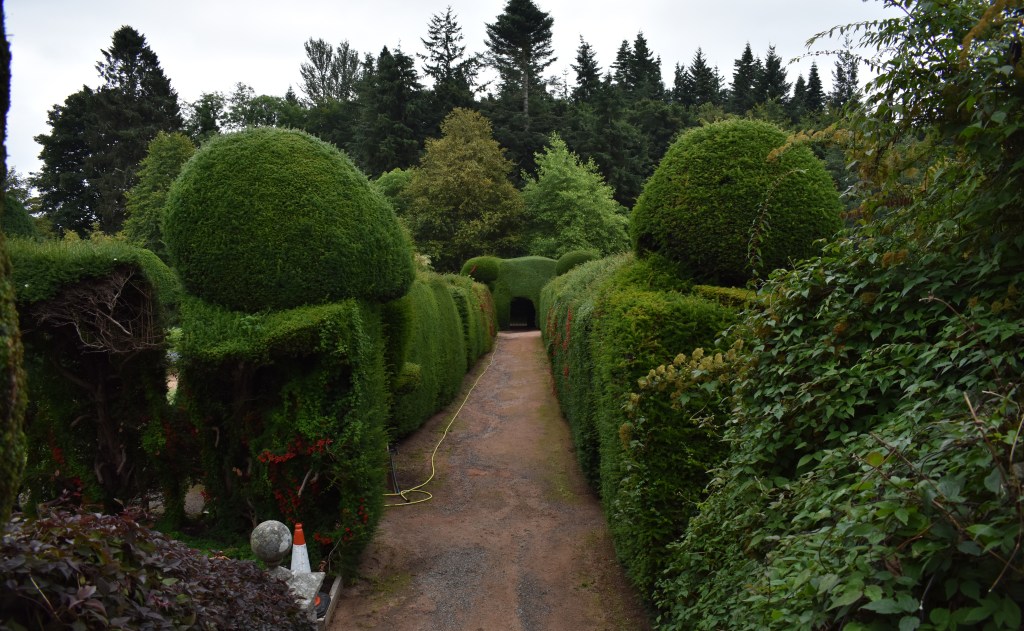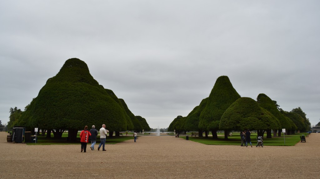 I did wonder if the Hampton Court yews might be incorporated in the hedge, but no. However, I can’t resist including them in my reminiscing about yew trees. They had been planted as avenues in the Great Fountain Garden created for William and Mary about the same time as the egg and eggcups were planted at Crathes. The story goes that sometime later Lancelot Brown (c 1716-1783), famous for developing the English Landscape tradition, allowed the yews to grow naturally. I love their, now clipped, unusual shapes.