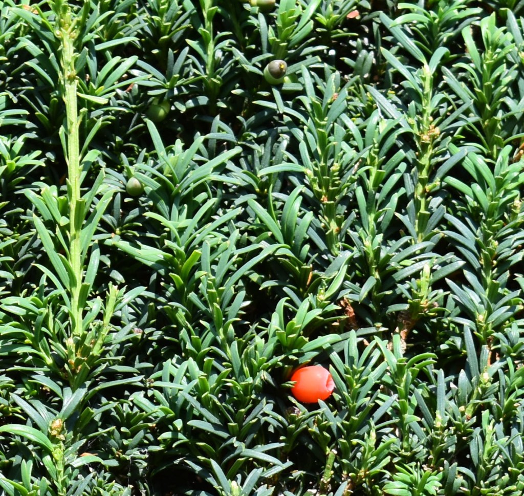 They also have relevance in a national and international context. The Royal Botanic Garden Edinburgh (RBGE) is an important player in global conservation and it is one of the remits of the garden to preserve the genetic diversity of species wherever possible. Diversity is best preserved in healthy habitats and ecosystems, but with the planet in crisis there is an urgent need for conservation in seedbanks and in living collections. A project started some years ago by the International Conifer Conservation Programme (ICCP) is slowly coming to fruition with the planting of hundreds of yew trees, Taxus baccata, from diverse genetic origins, in the form of a hedge – the new perimeter hedge of RBGE. A cutting taken from the famous Fortingall yew began the planting in 2014; eventually around 2000 yews will be planted. When completed the hedge will contain cuttings from seventeen Scottish heritage yews; from eighteen English, Welsh and Northern Irish yews; and from two in the Republic of Ireland. It will also contain plants grown from seed collected from various locations within the natural range of the yew including two English sites and one Republic of Ireland site. Other locations within the natural range include countries such as Denmark, Albania and Croatia where RBGE staff (often nationals of the country) are domicile. A heritage hedge can successfully preserve a wide genetic diversity of one species in a relatively small space. In this case 30% are from the British Isles and 70% are from other countries. Why is this hedge important? With such a depletion of the natural habitats of yews, the possibility of declining health – in the way that inbreeding in humans is detrimental – might affect the long term future of these trees. If in time we learn to manage our resources more effectively, habitats may be restored and the diversity of the RBGE hedge will give any such restorations a greater chance of success.