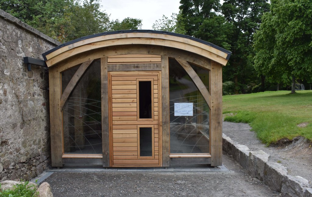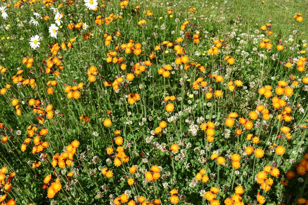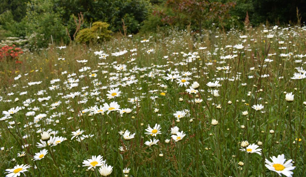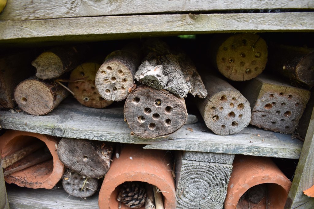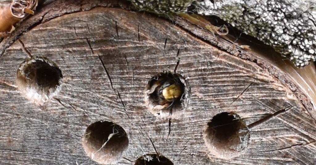 The pink campions and ox-eye daisies make a great show and as the year progresses the variety will increase. Yellow rattle, parasitic on grasses, is crucial for suppressing the more vigorous grasses. Whilst inspecting the meadows I noticed a solitary bee just coming out of one of the holes in the bug hotel by the wildlife garden. It withdrew into its hole as I bent down for a closer look. Every insect is a bonus these days when the planet is under attack from all sides – yes I know midges are a curse, but not to the swallows.