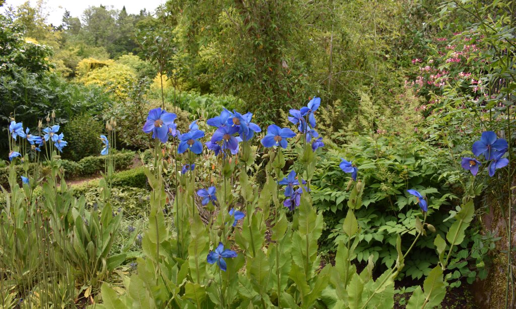 The Welcome building is making progress and I hear that the green roof has just been planted. Meantime the alternative gate to the garden opens to a grand show of meconopsis poppies.