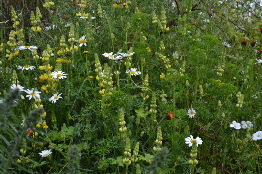 There are no native lupins in Britain, but some species, which originate from North America, have been grown in British gardens for centuries and have naturalised quite readily in Scotland.* The tree lupin, Lupinus arboreus, is a favourite of mine. I once collected a few seeds from a dried up shrivelled plant growing on an abandoned railway near St Andrews and they germinated and thrived in my Moray coastal garden where their pale yellow abundance filled me with joy. I took their seeds to Torphins and enjoyed them there too for a while.