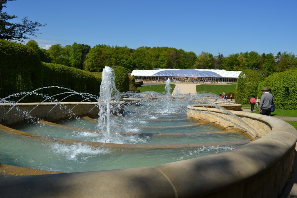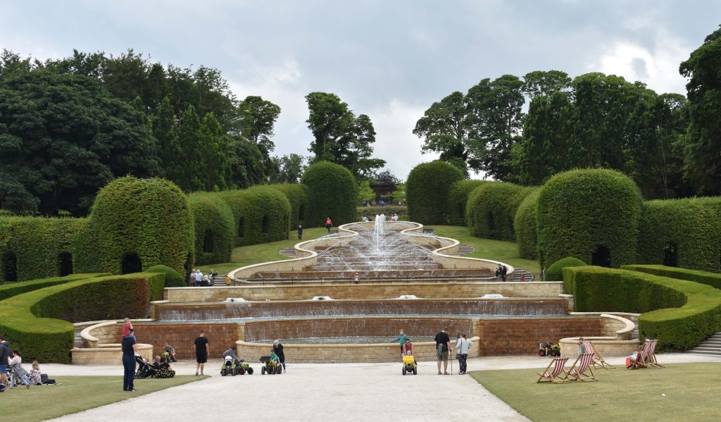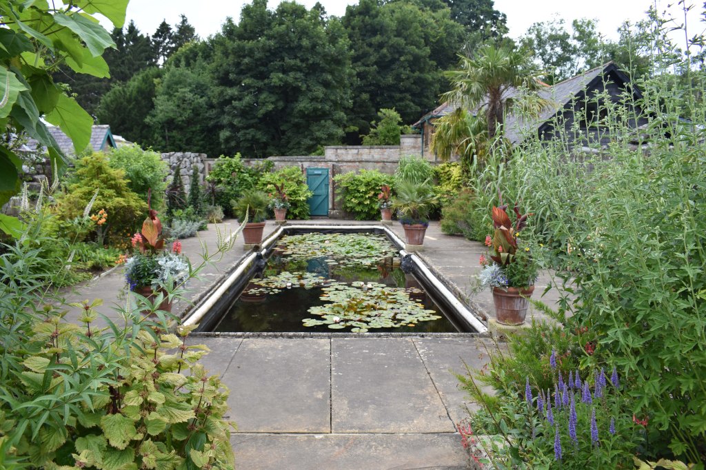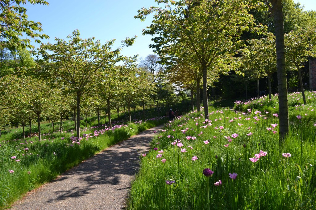I had been to Alnwick gardens previously, but a chance to return could not be missed. At one time a garden befitting a duke, it had been neglected in the twentieth century and used for allotments and forestry. In 1996 the Duchess of Northumberland began her ambitious development project. Although it has grand ideas and also relies on large engineering input like Cragside, the Duchess was keen to make the garden readily accessible with a strong community aspect – she calls it ‘a contemporary pleasure garden’. It is run by a charity, The Alnwick Garden Trust. We must previously have visited in the spring because although the cherry orchard had lost most of it cherry flowers (Tai–haku) I remembered that it was still a lovely walk with the pink tulips going over and alliums just coming; there was garden full of fascinating water features – much enjoyed by children; the poison garden was kept locked and could only be visited on a tour; an interesting area had been the ornamental garden at the top of the cascade. I wondered how it had evolved.