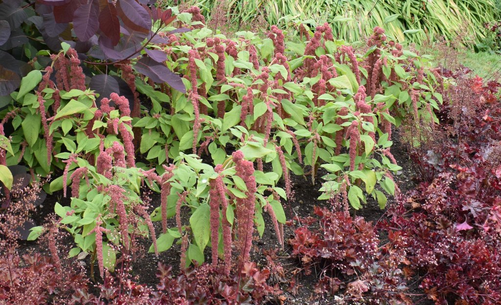 - The Amaranthus caudatus ‘Coral Fountain’ is now in full flower in the Red Garden.
