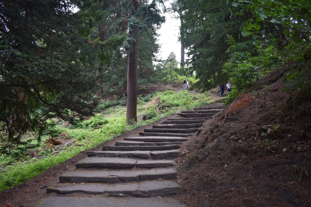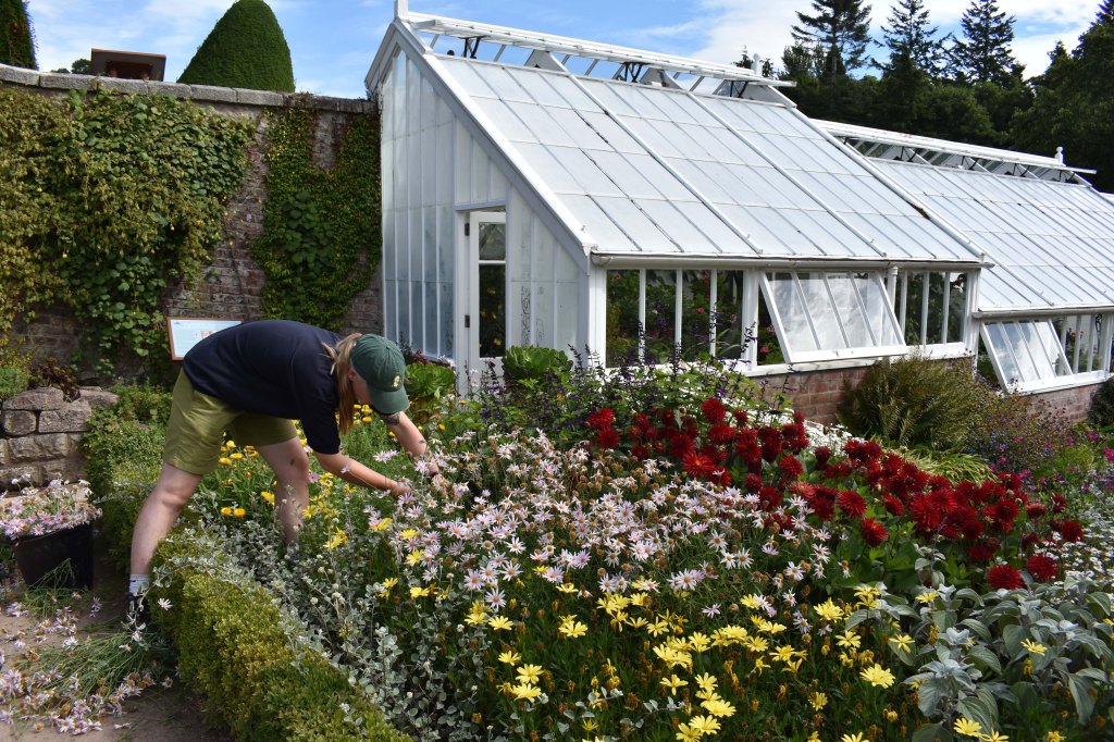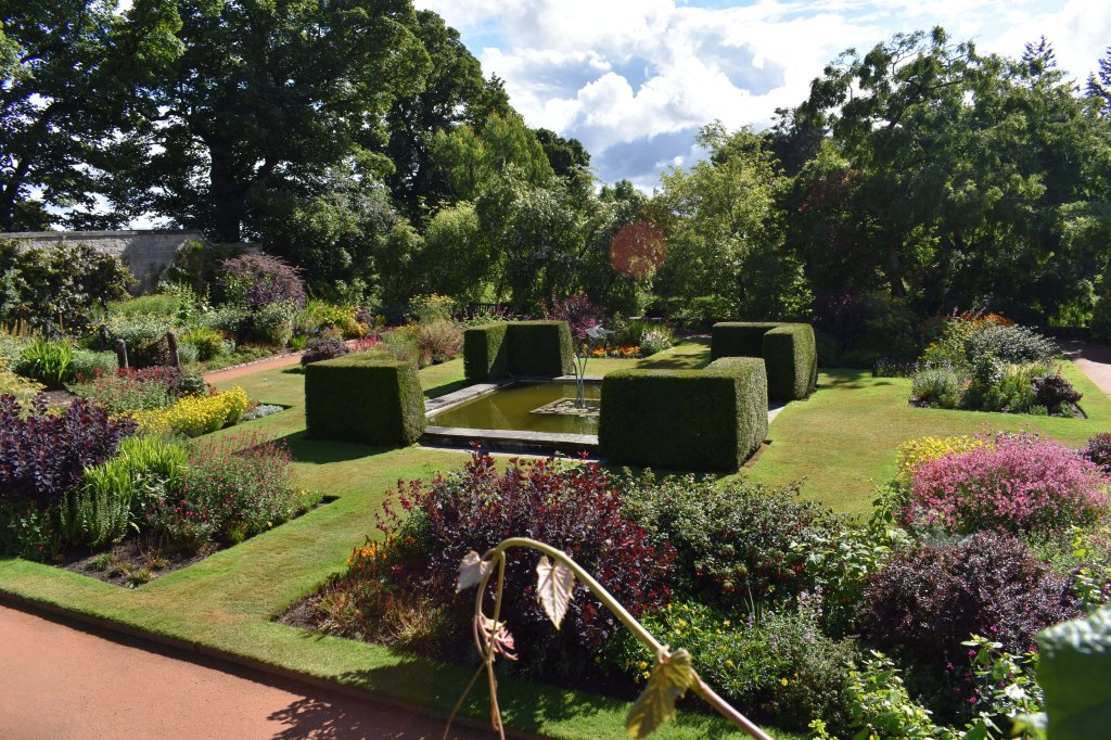 The woods had, like Crathes, suffered with Storm Arwen and some paths were still barred to visitors. Whilst the family visited the house – the first in the world to be lit by electricity – I found my way, firstly for a quick look at the massive rock garden that tumbled down from the front of the house, and secondly to the formal gardens.
