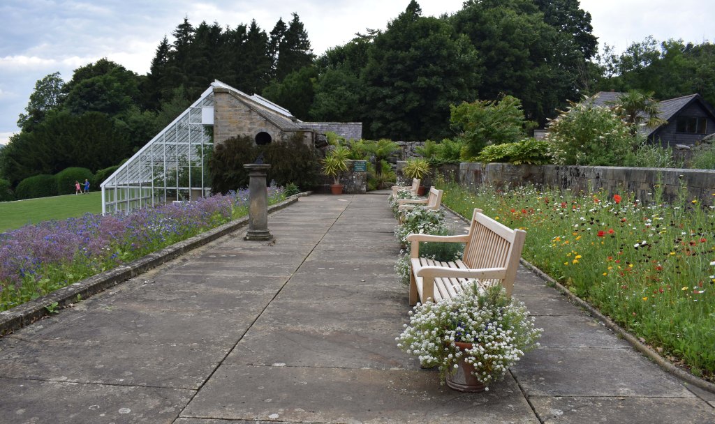 After climbing innumerable steps I emerged to find the Northumbrian countryside as a backdrop to the three and a half acres of formal terraced gardens – just a little smaller than the walled garden at Crathes.